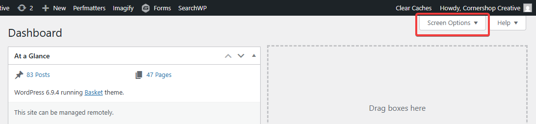 Using Screen Options on the Dashboard, you can control which panels are visible. For example, you can choose to display security updates, Google Analytics data, or other widgets depending on what’s most useful to you.